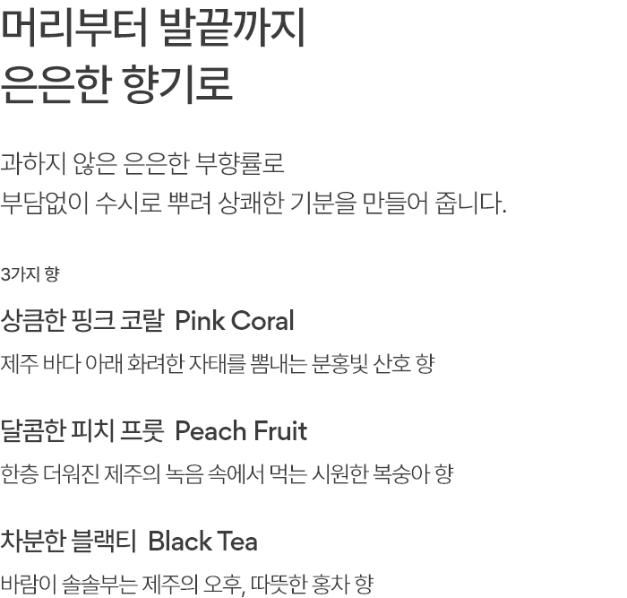 부담없이 수시로 뿌려 상쾌한 기분을 만들어 줍니다.